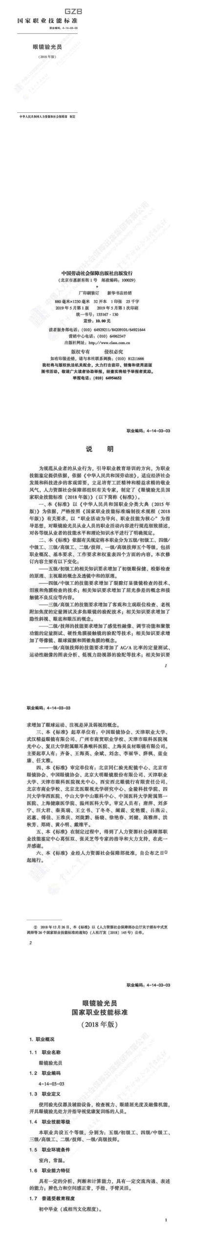 附件一:国家职业技能标准眼镜验光员(2018版)