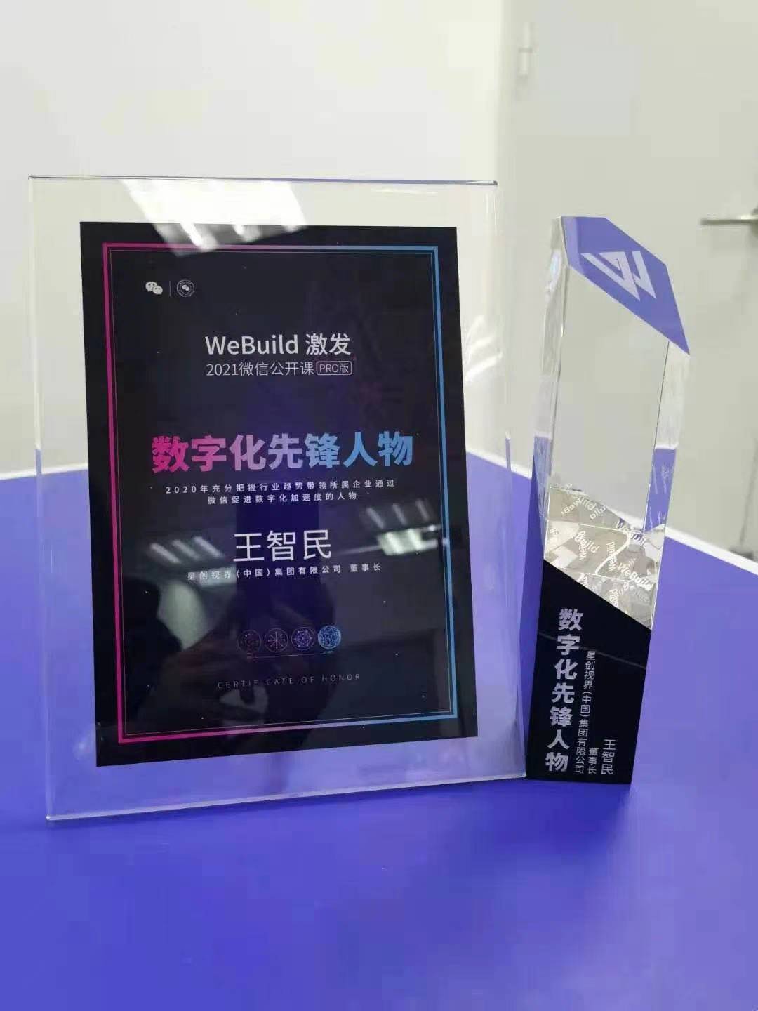 2月1日消息,宝岛眼镜母公司星创视界(中国)集团有限公司董事长王智民获得由腾讯旗下企业微信颁发的“数字化先锋人物”奖。