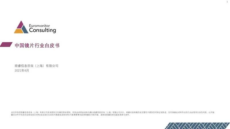 2021年4月Euromonitor欧睿国际发布《中国镜片行业白皮书》,这一版的白皮书围绕五大类主题内容展开详细剖析,从眼健康洞察开始,回顾镜片行业的历年发展情况,再从配镜现状与镜片挑选标准入手,深度剖析了镜片行业的现状、趋势以及展望。