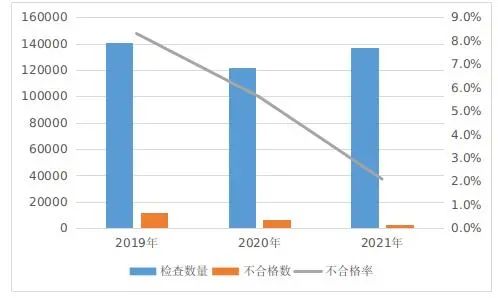 近日,市场监管总局通报了2019年到2021年连续3年对全国眼镜制配场所计量专项监督检查情况:全国累计检查眼镜制配场所127529家,眼镜制配计量器具398879台,查处不合格计量器具21422台。其中,2019年共检查眼镜制配场所41800家,检查计量器具总台数140570台,查处不合格计量器具11730台,不合格率为8.3%;2020年共检查眼镜制配场所40894家,检查计量器具总台数121638台,查处不合格计量器具6772台,不合格率为5.6%;2021年共检查眼镜制配场所44835家,眼镜制配计量器具136671台,查处不合格计量器具2920台,不合格率为2.1%。