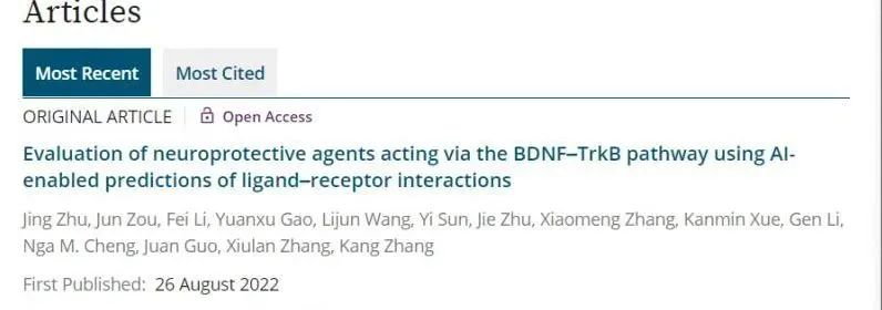 近日,澳门科技大学张康教授课题组和中山大学中山眼科中心张秀兰教授课题组在世界著名Wiley出版社发行的MedComm Future Medicine上发表题为Evaluation of Neuroprotective Agents Acting via the BDNF-TrkB Pathway Using AI-enabled Predictions of Ligand-Receptor Interactions的研究论文,基于人工智能(AI)技术预测3D蛋白质结构,并寻找能够与TrkB受体相互作用的小分子,以期找到潜在的RGC神经保护药物。