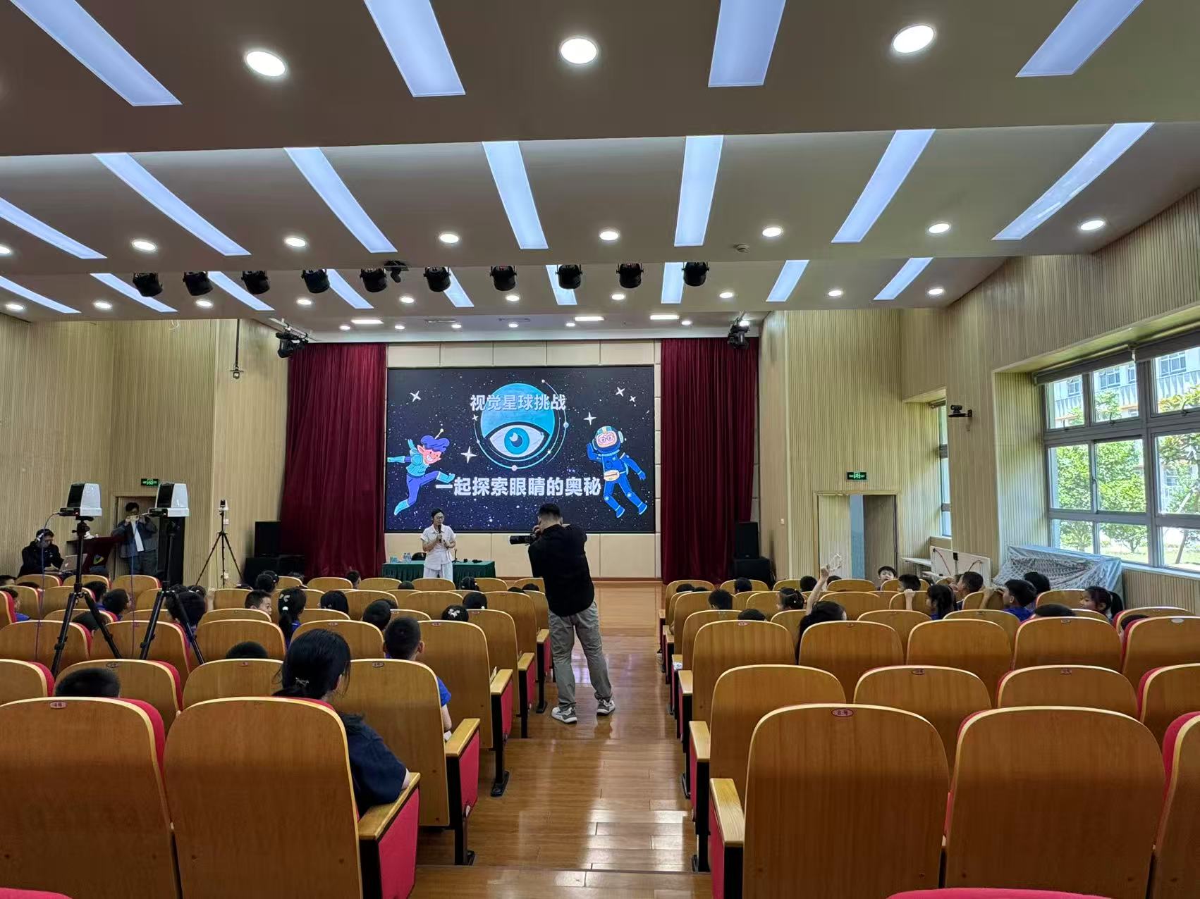 “视觉星球挑战” 怎么少得了互动!讲师设置 “护眼大闯关” 环节,同学们化身 “护眼小战士” ,抢答护眼知识题,还分享自己的护眼小妙招,现场热闹又欢乐,同学们实实在在掌握护 “睛” 技能!