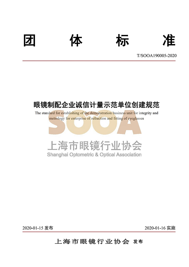 T/SOOA190005-2020 团体标准《眼镜制配企业诚信计量示范单位创建规范》