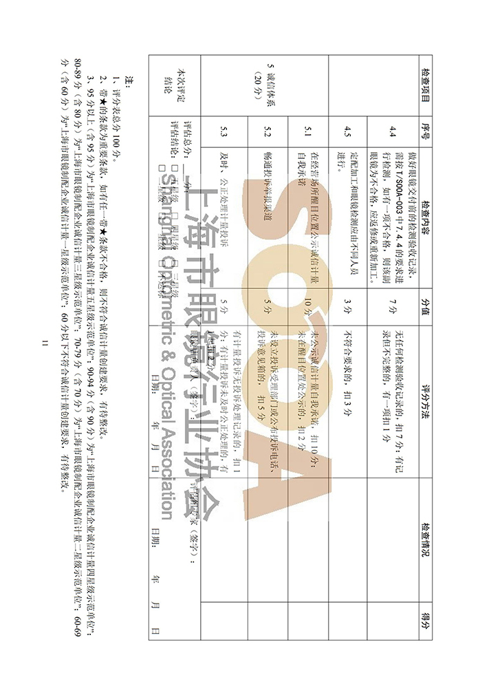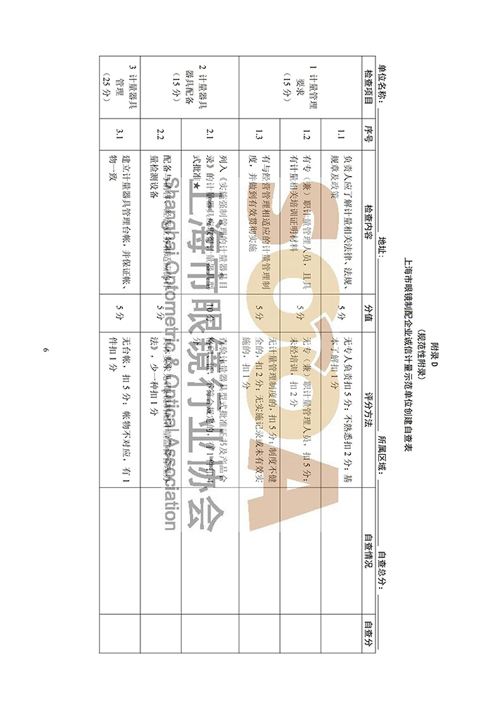 上海市眼镜制配行业诚信计量示范单位
