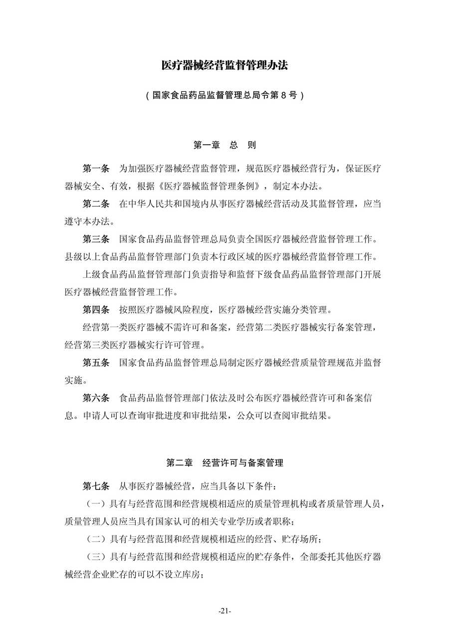 《医疗器械经营监督管理办法》
