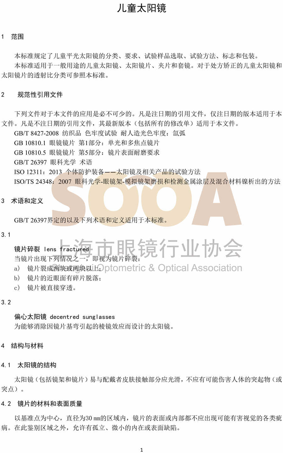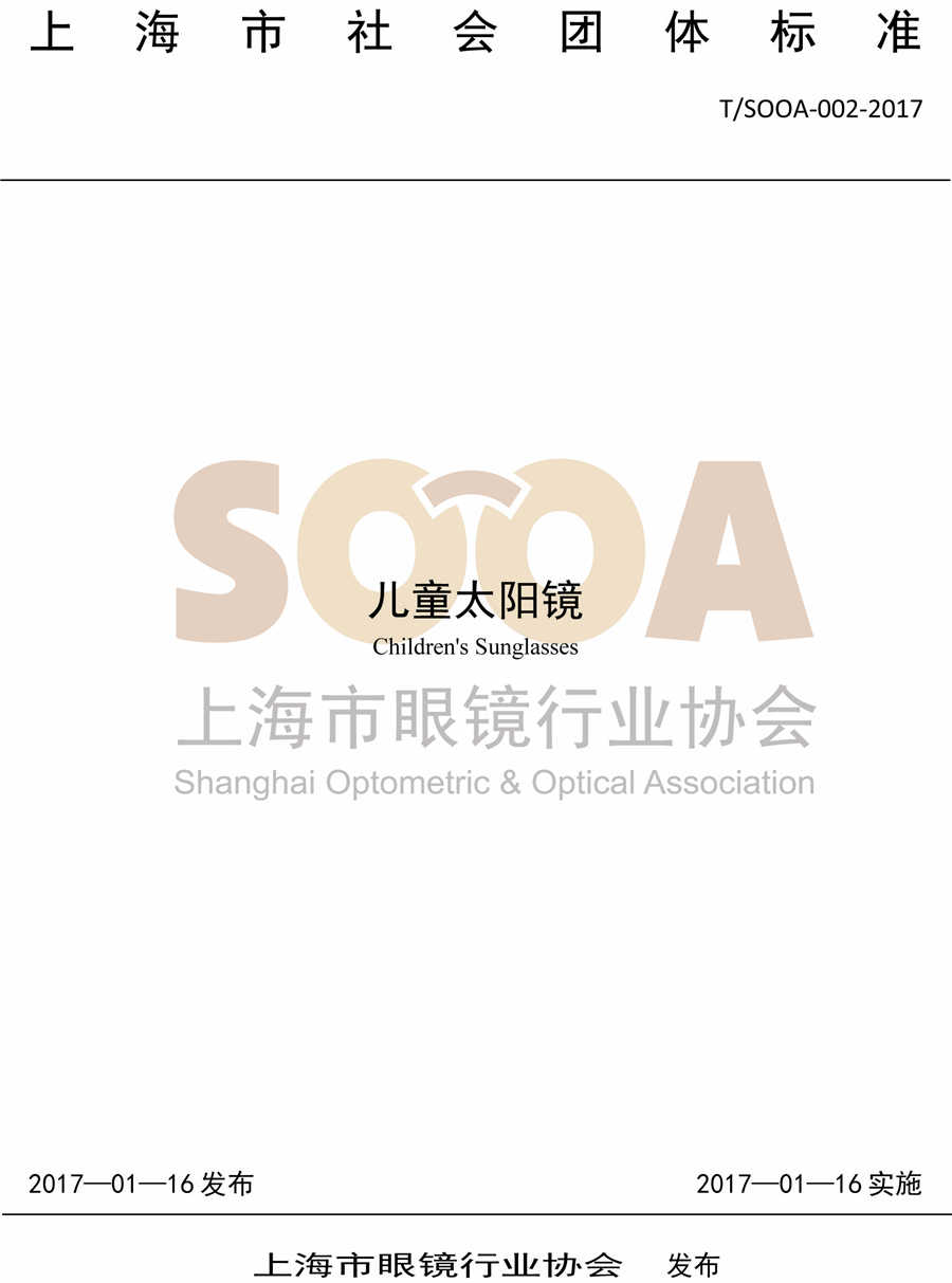 T/SOOA-002-2017团体标准《儿童太阳镜》