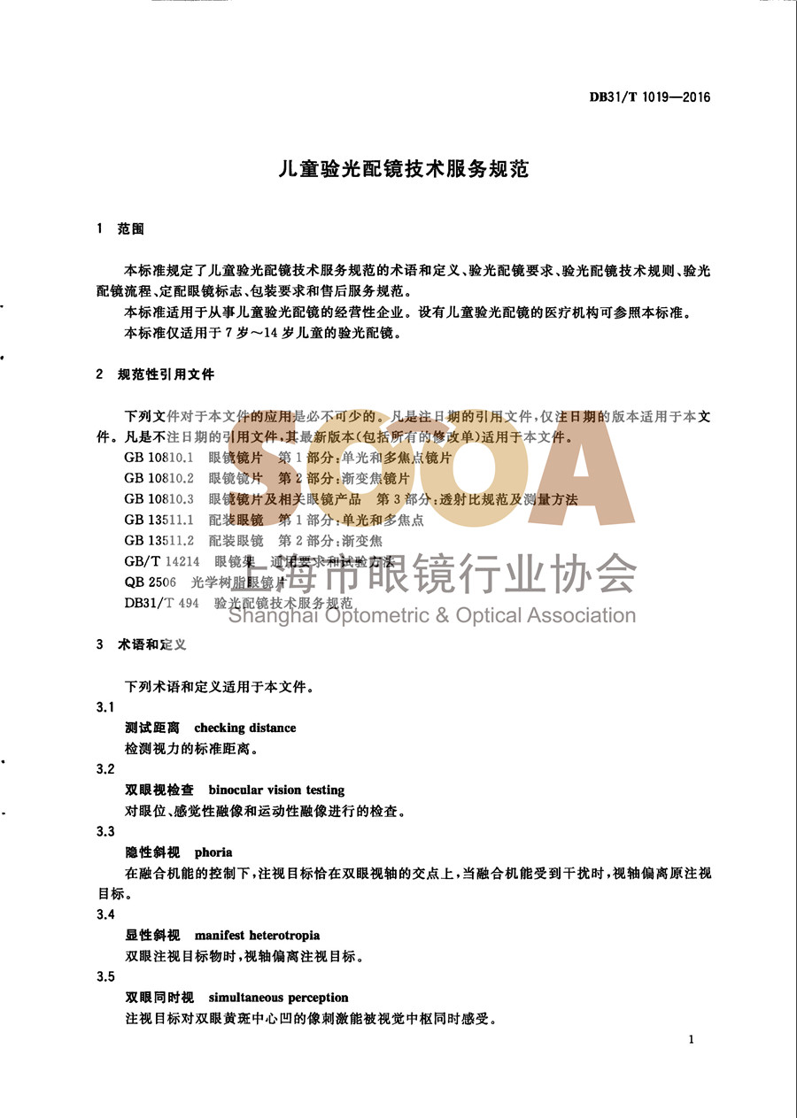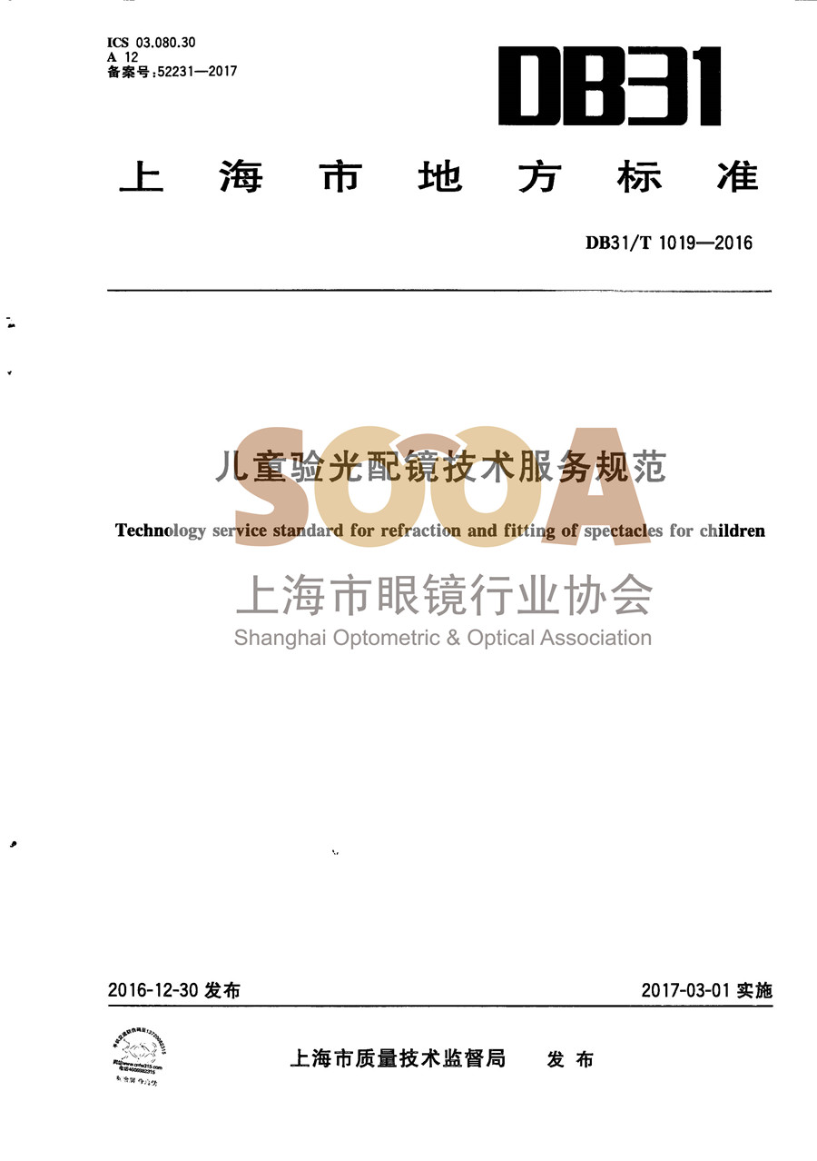 DB31/T1019-2016《儿童验光配镜技术服务规范》