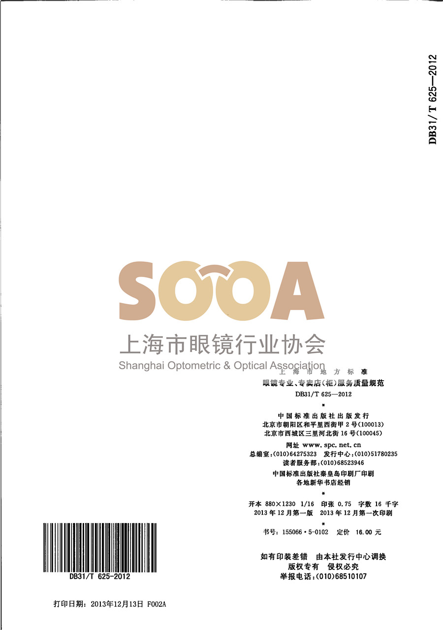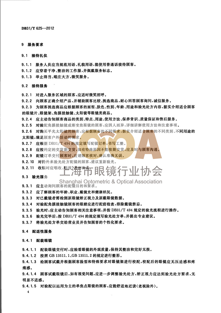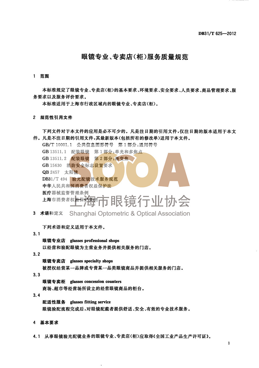 DB31/T625-2012《 眼镜专业、专卖店(柜)服务质量规范》