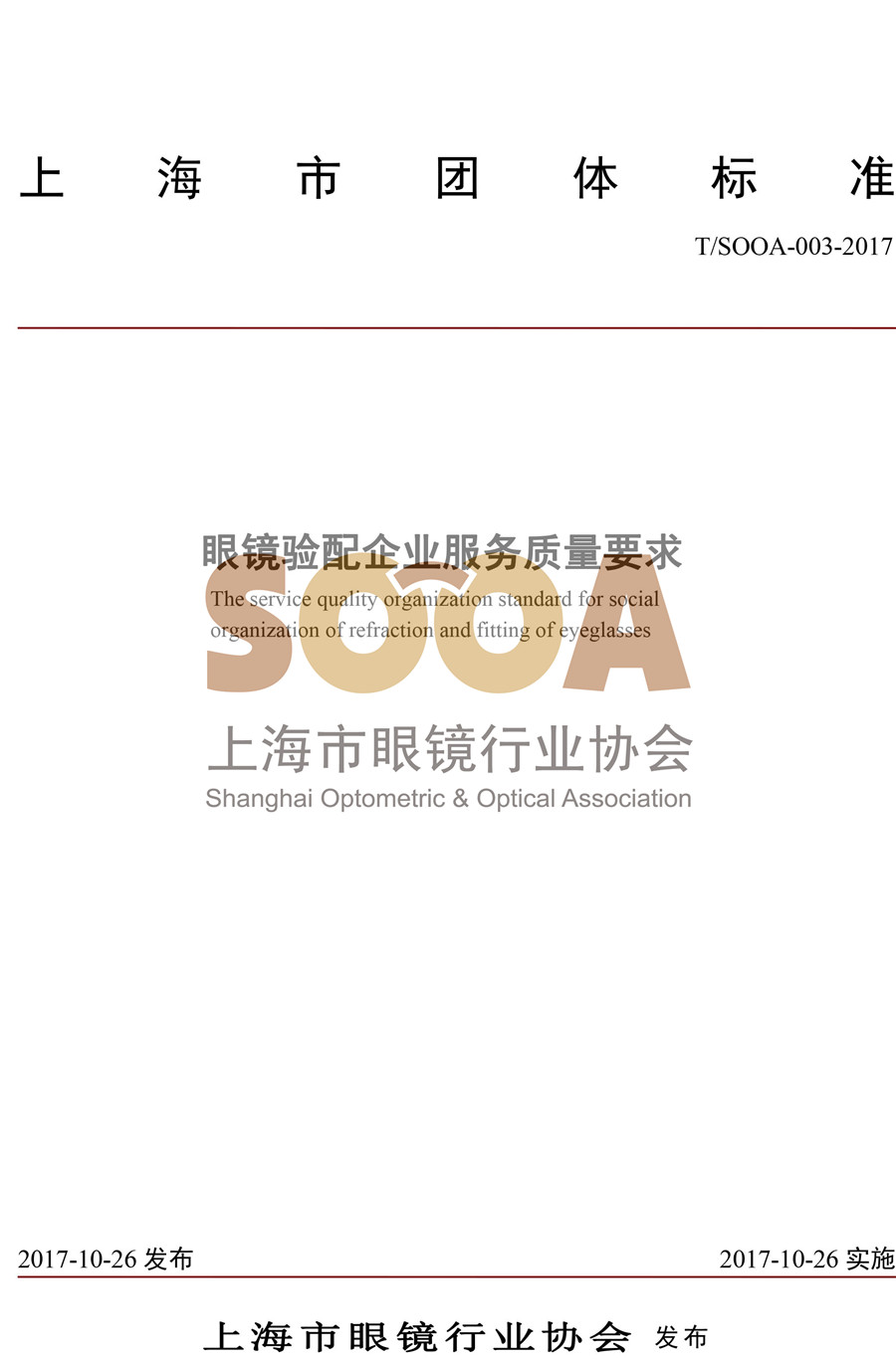 T/SOOA-003-2017团体标准《眼镜验配企业服务质量要求》